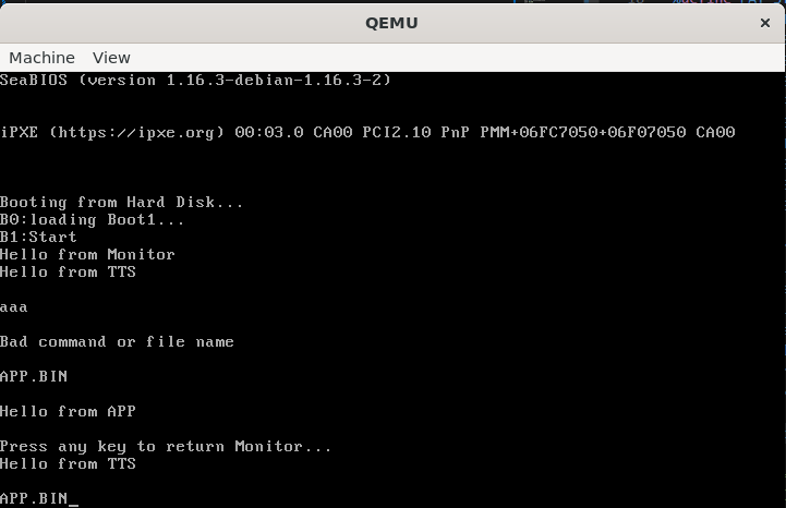 x86リアルモードで動くモニタプログラムのHyfaxを作るお話の8回目です。boot0→boot1→monitorとやってきて、monitorに機能を実装しました。今回はmonitorからappをロードし実行する部分です。