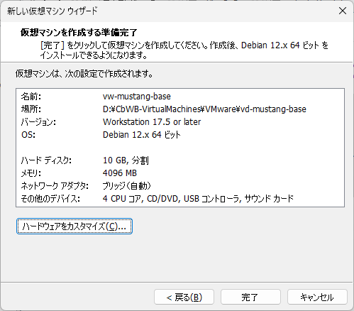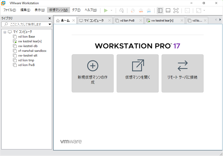 VMware Workstationの管理画面から『仮想マシンの設定の編集』に入ります。