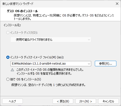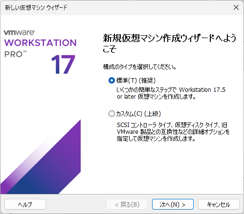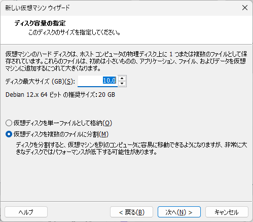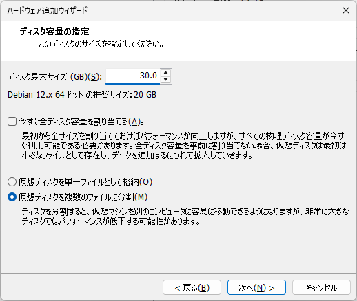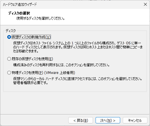 『仮想ディスクの新規作成』を選択して『次へ』を押下。