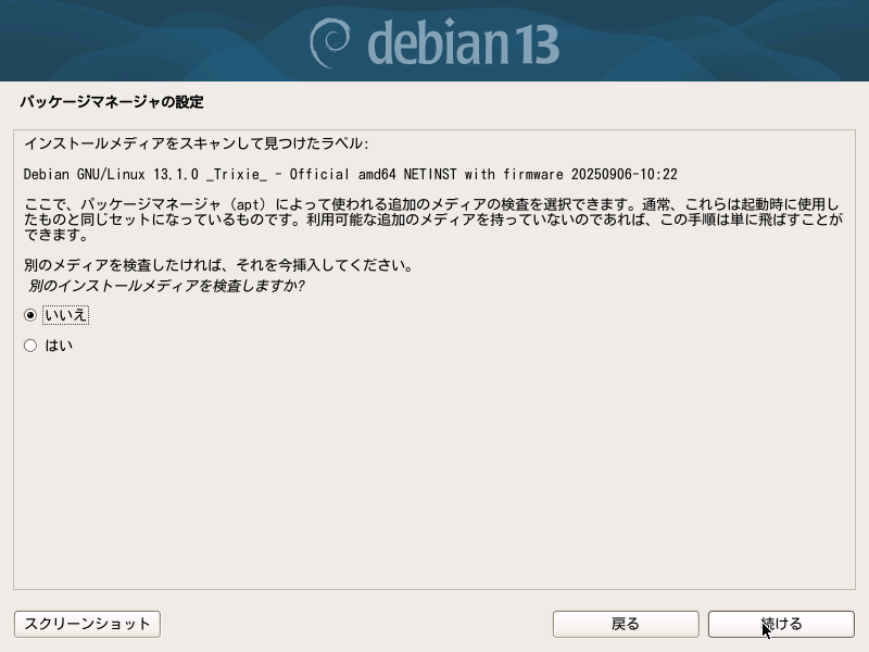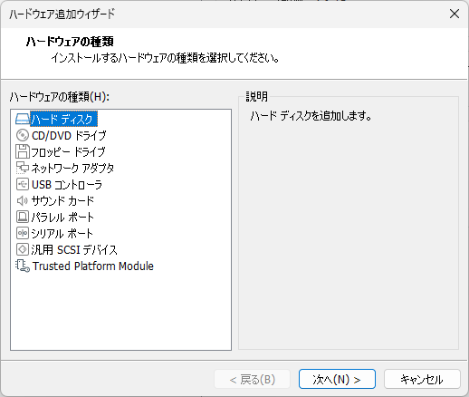 『ハードディスク』を選択して『次へ』を押下。