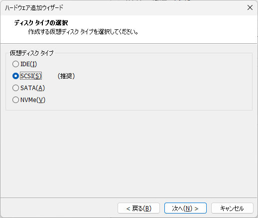 『SCSI』を選択して『次へ』を押下。