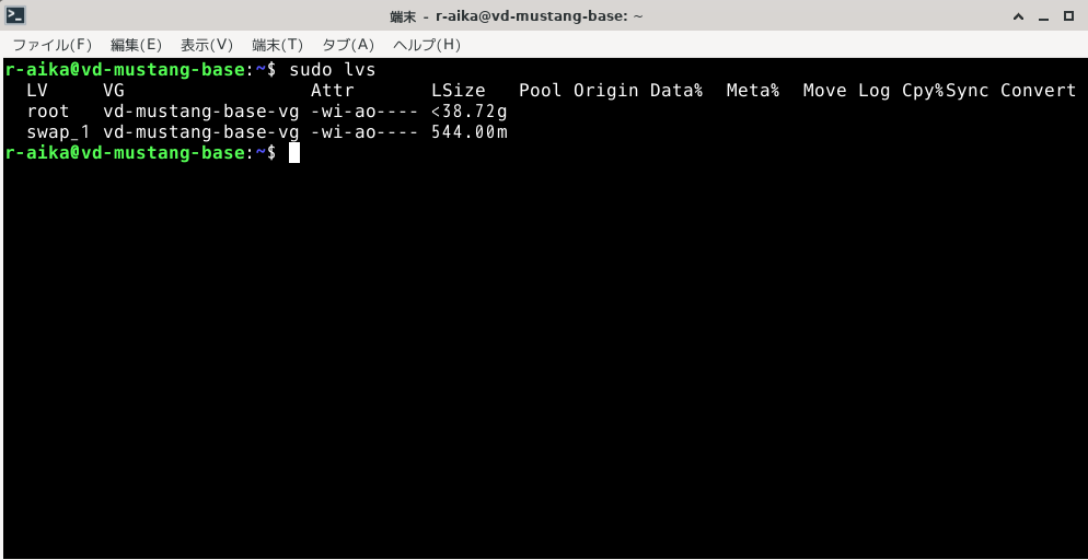 ボリュームグループ名は『vd-mustang-base-vg』らしいです。