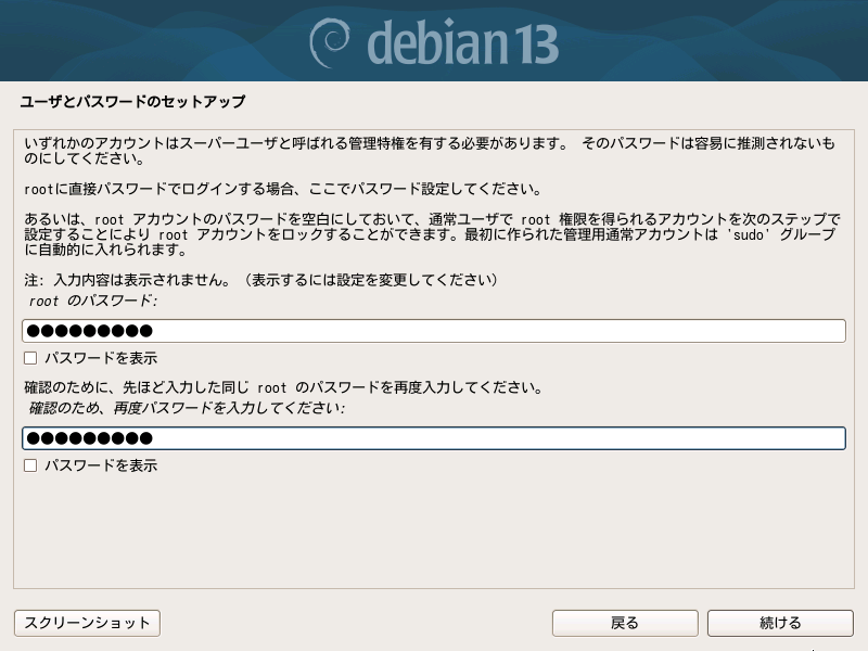 アドレスを設定します。 - sudoユーザの設定