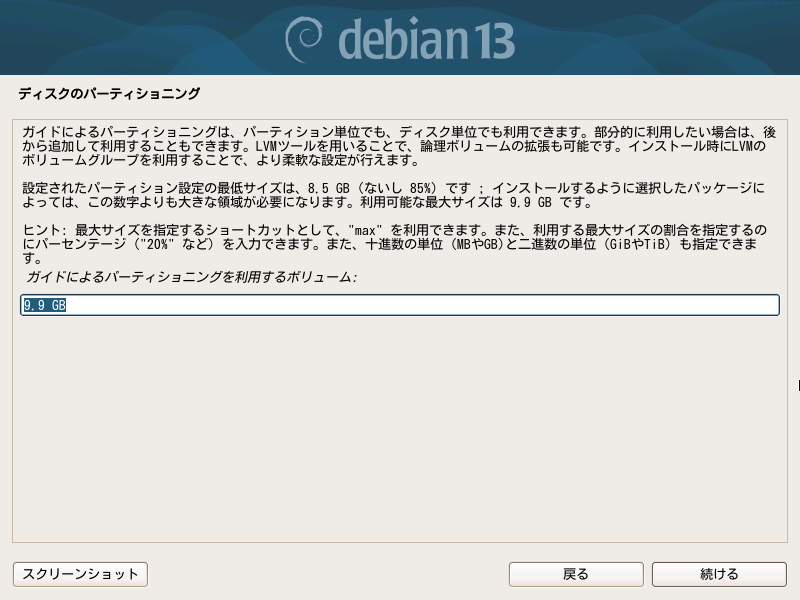 『ディスク最大サイズ』を設定して『次へ』を押下。